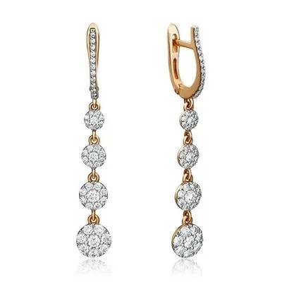 PLATINA Серьги с английским замком из красного золота 585 пробы c бриллиантами
